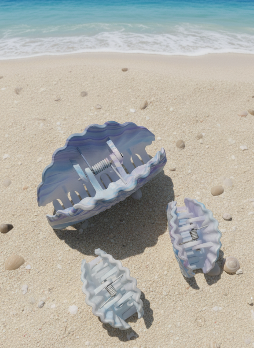 Inspired by the beauty of the sea and the tranquility of the beach, this Seashell Hair Claw clature Set is the perfect accessory to elevate your summer style.