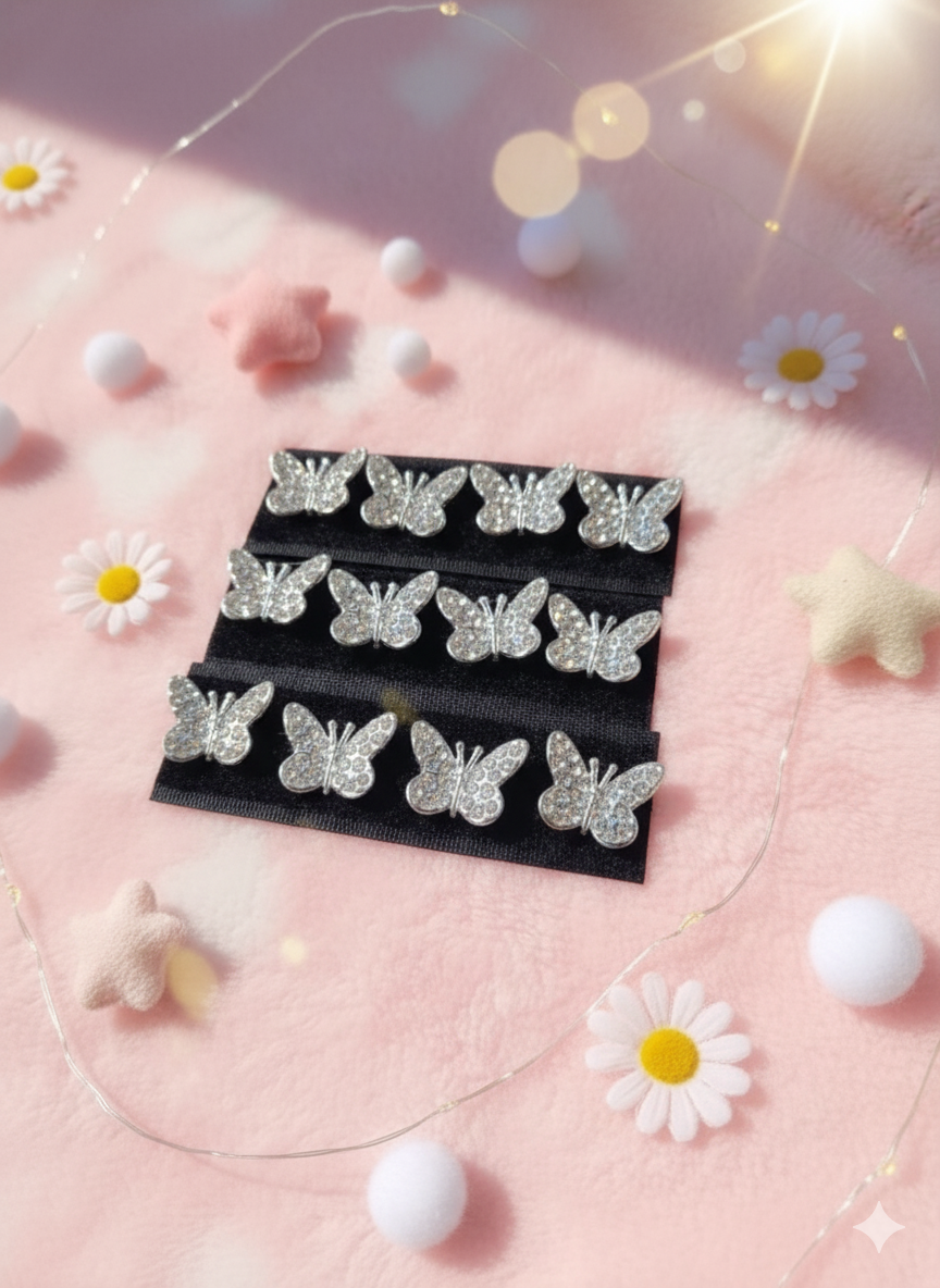 Set of 12 Mini Rhinestone Butterfly Hair Clips