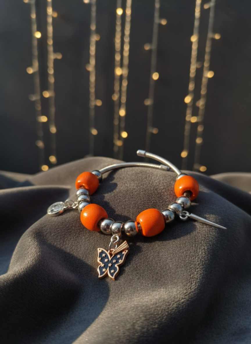 Vibrant Green Beaded Charm Bracelet with Enamel Butterfly