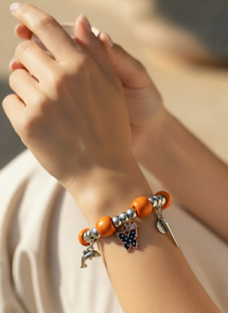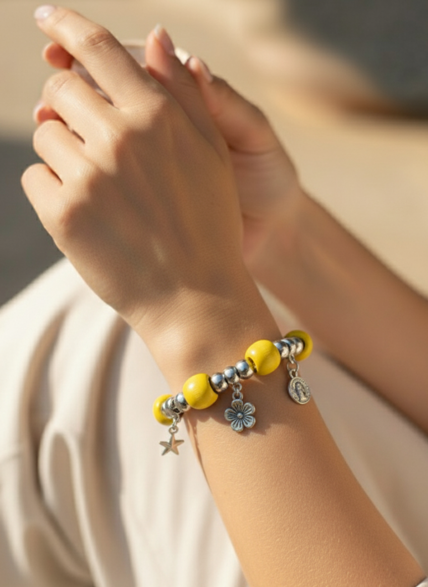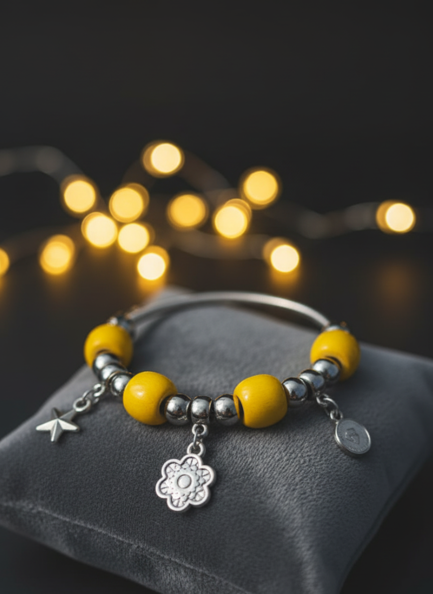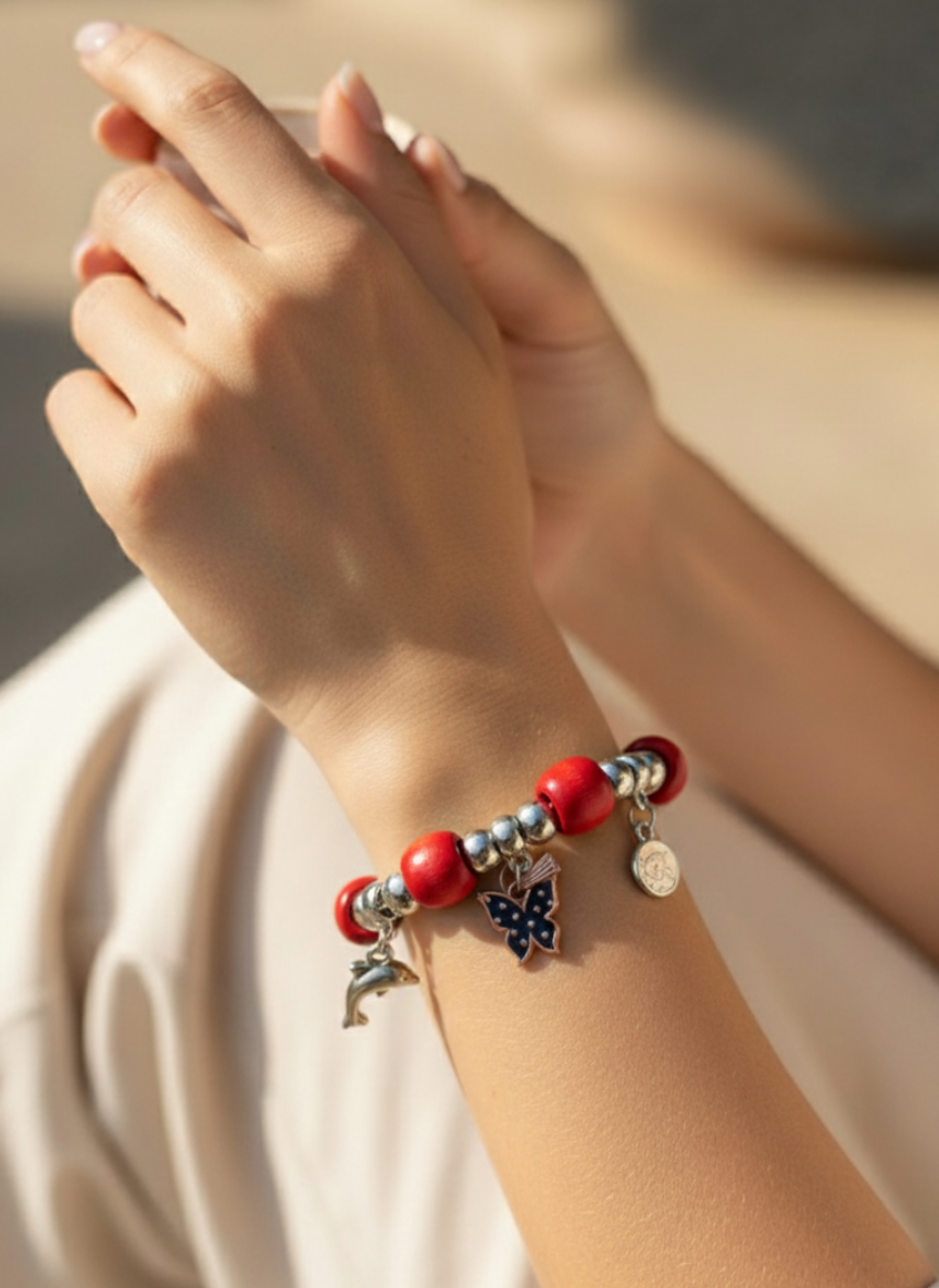Embrace nature's beauty and vibrant color with this eye-catching Green Beaded Charm Bracelet. Perfect for adding a pop of color to any outfit, this bracelet combines a bold aesthetic with whimsical charm details. It's an ideal accessory for everyday wear or a thoughtful gift for someone special.